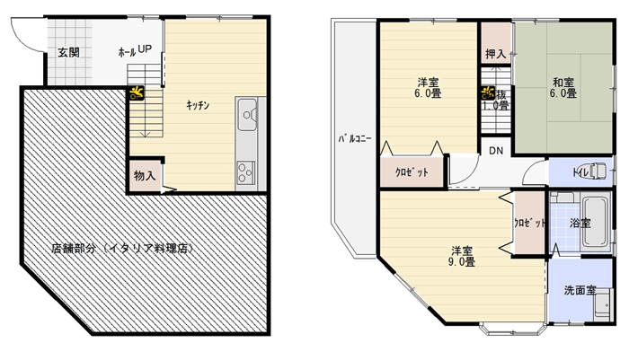 | 間取り | 3LDK | 備 考 | *太陽光発電、浴室TV付き *ペット可(小型犬に限る) *前所有者入居中につき、内観は退去後より可 *1F店舗(イタリア料理店)部分あり |