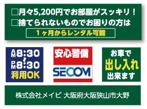 堺市南区赤坂台トランクルームで荷物の保管できます!